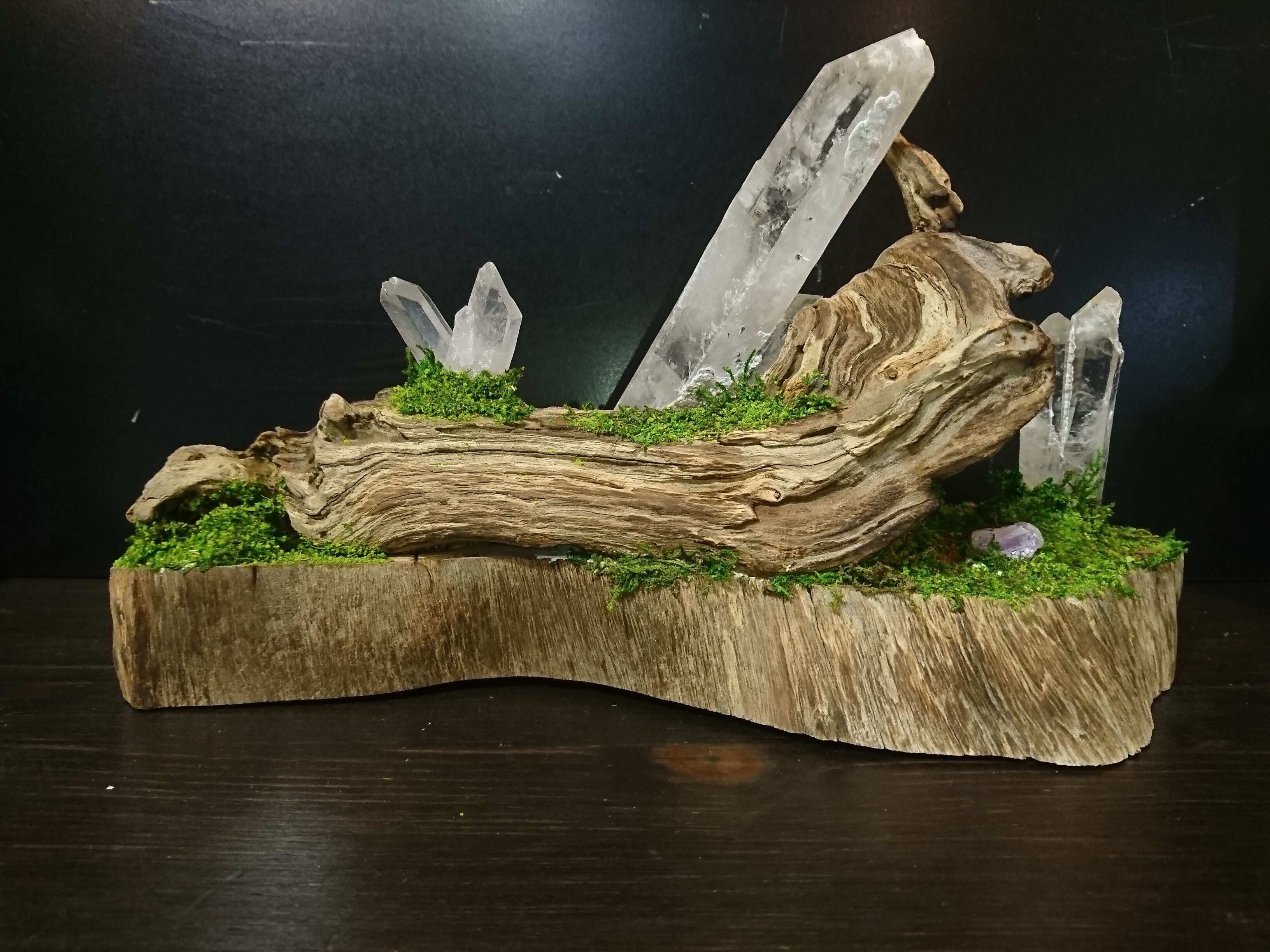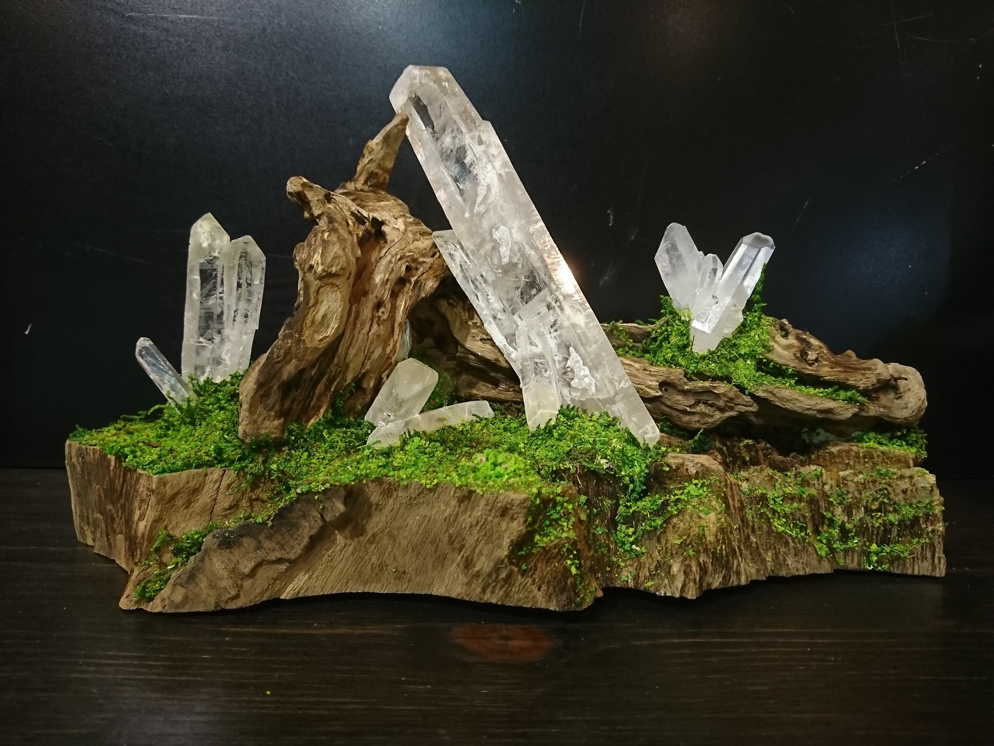 中央の大きな水晶、その両脇にある水晶は「モンゴルクオーツ」と言って、内モンゴルという場所で採取される水晶です。