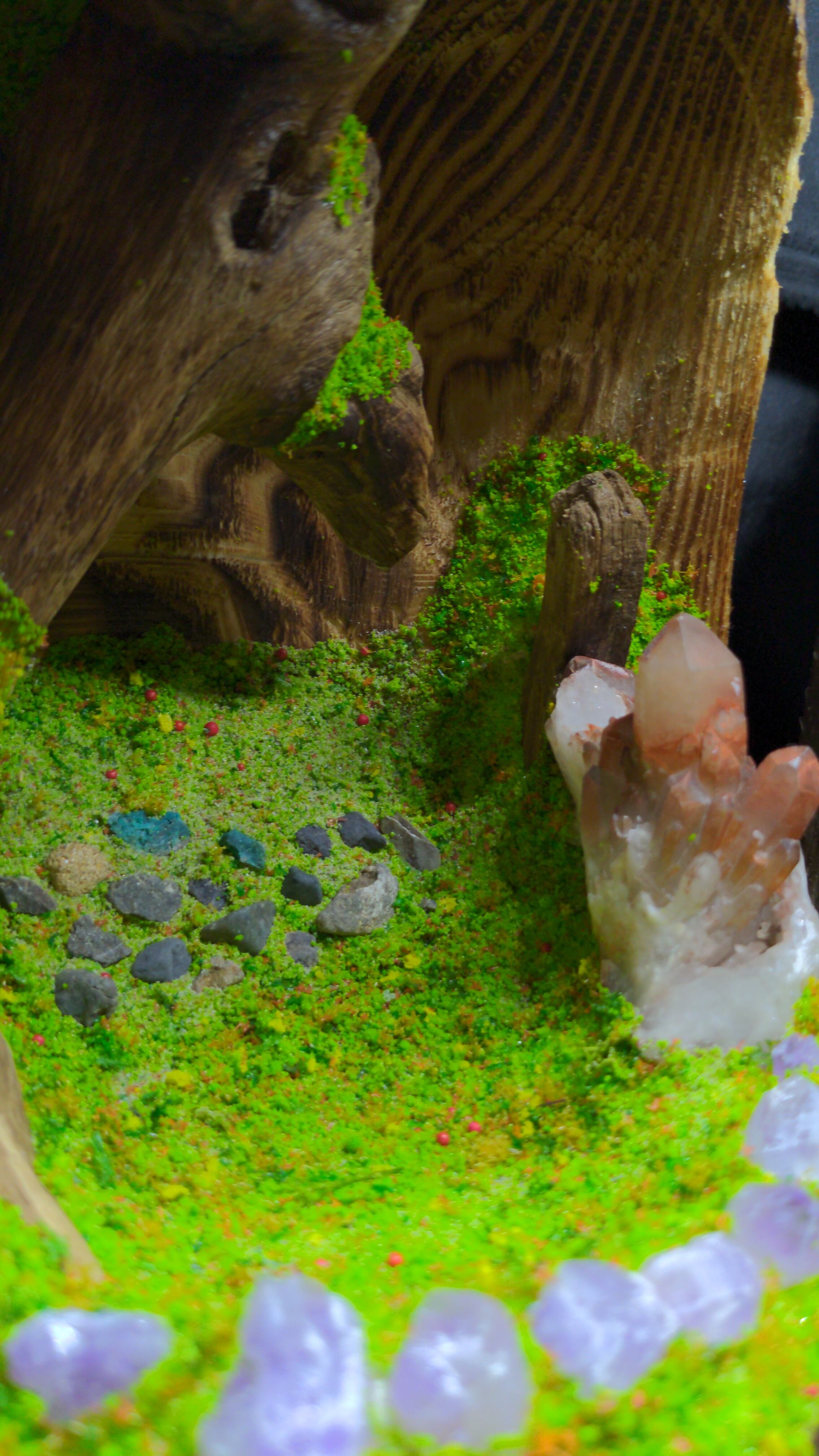 直径約16センチ、高さ約25センチほどの丸太をくり抜いた世界。