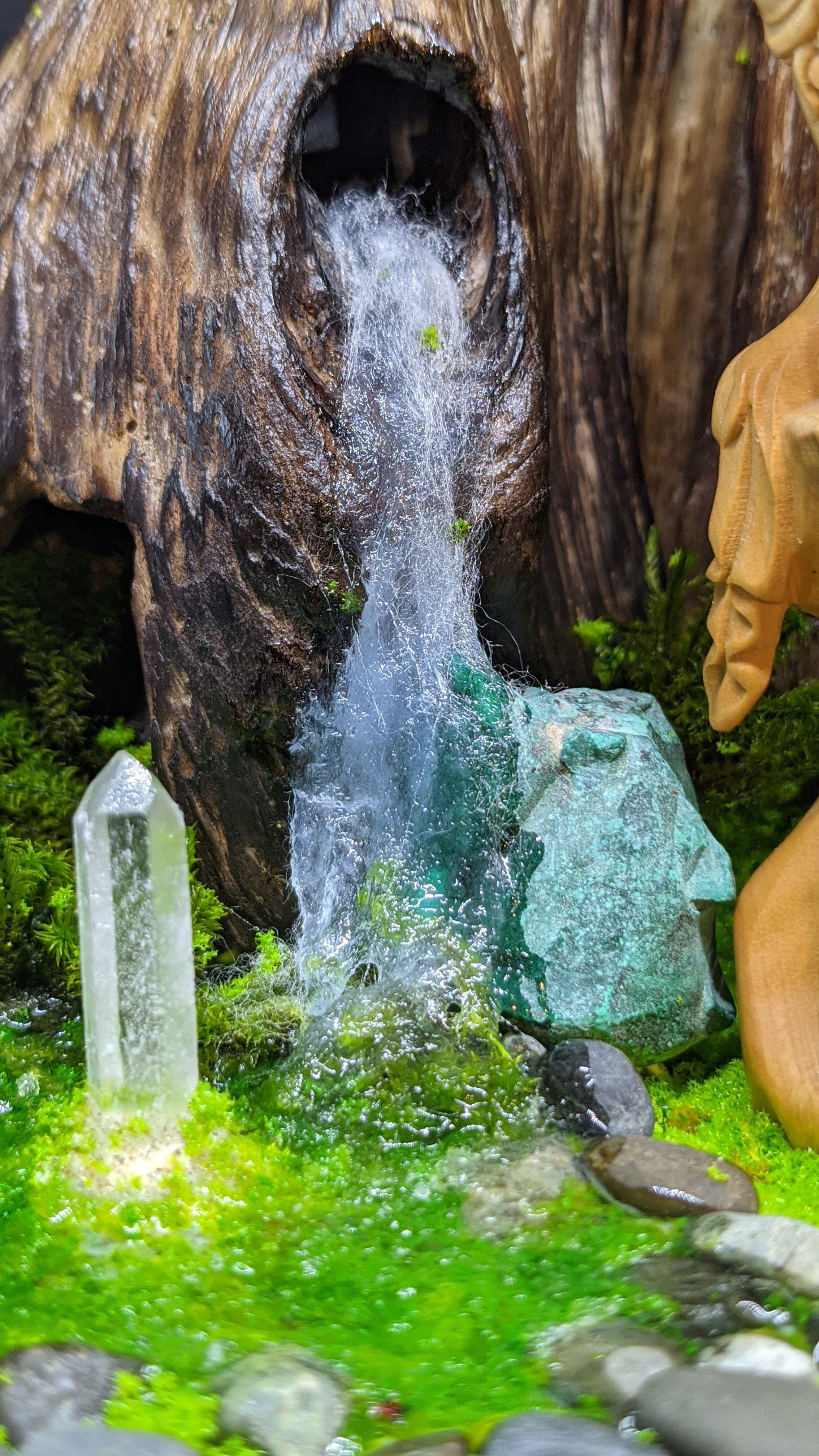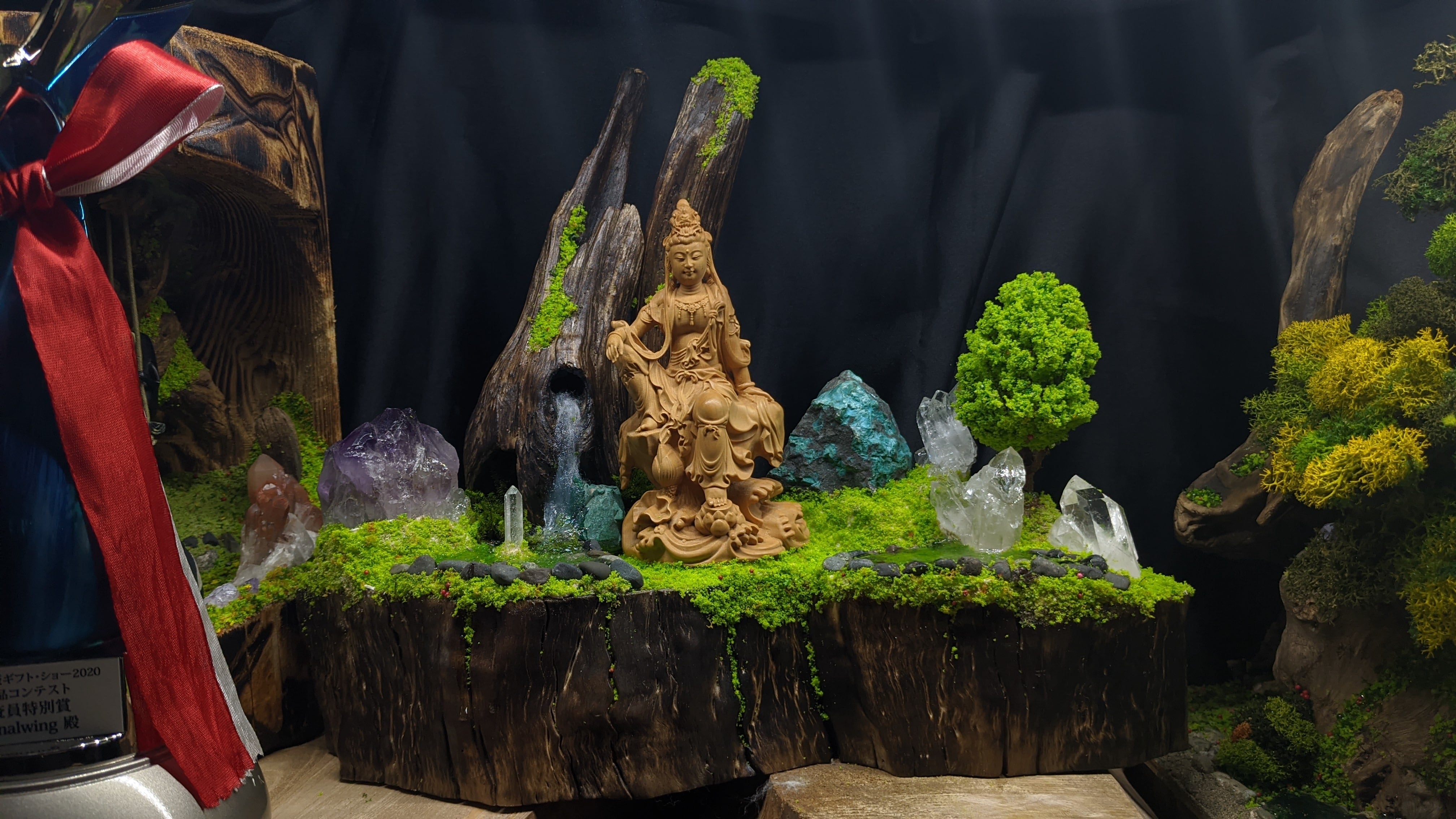 石と流木のインテリアの製作の中で、今回初めて仏像を配しました。