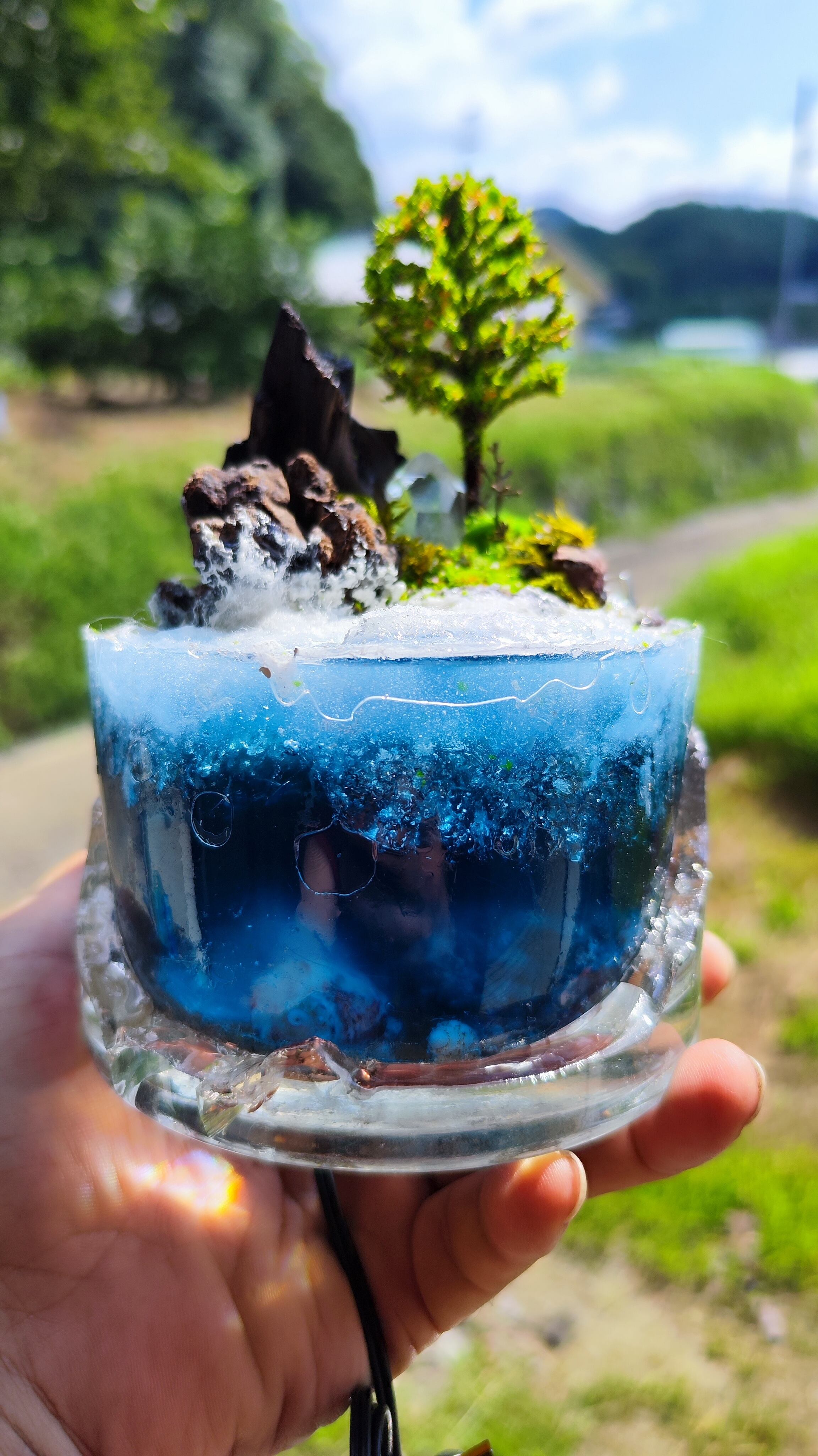 ガラスの器の中に、海を再現していましたが、前面のガラスが割れた事をキッカケに、ガラスを取り除きました。